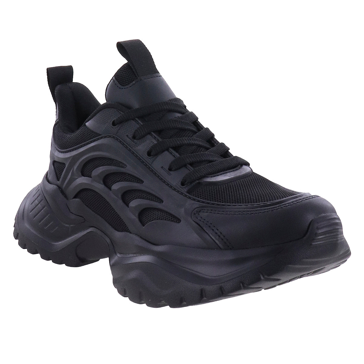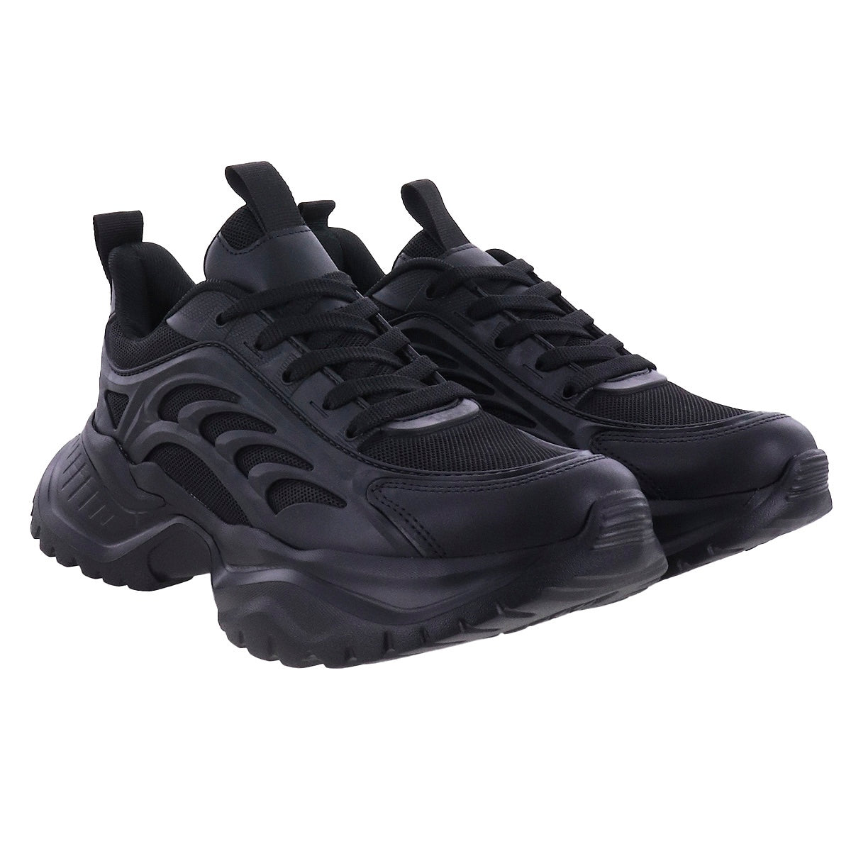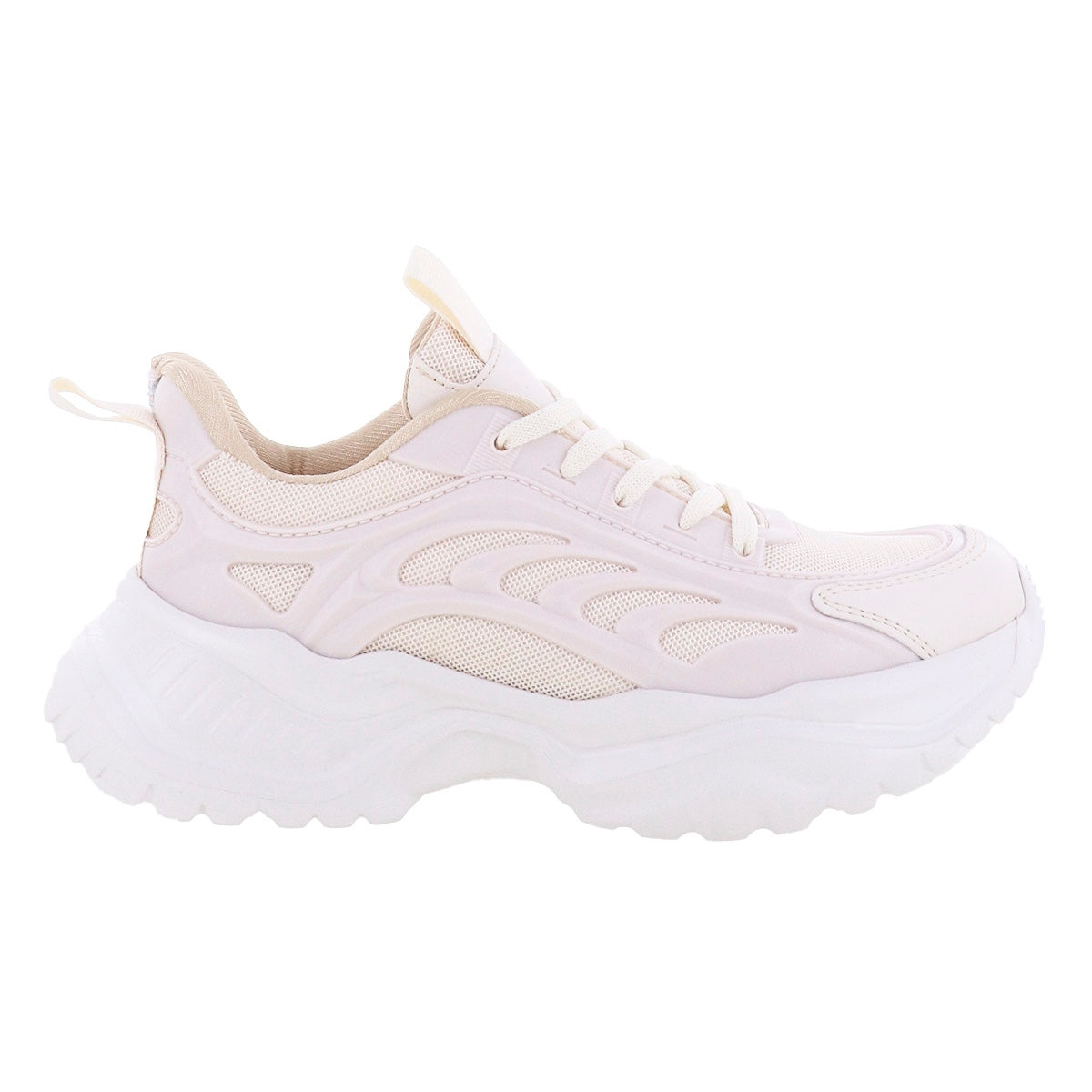 Tenis deportivos multitextura de plataforma chunky. Cintas de ajuste a tono y suela antiderrapante.