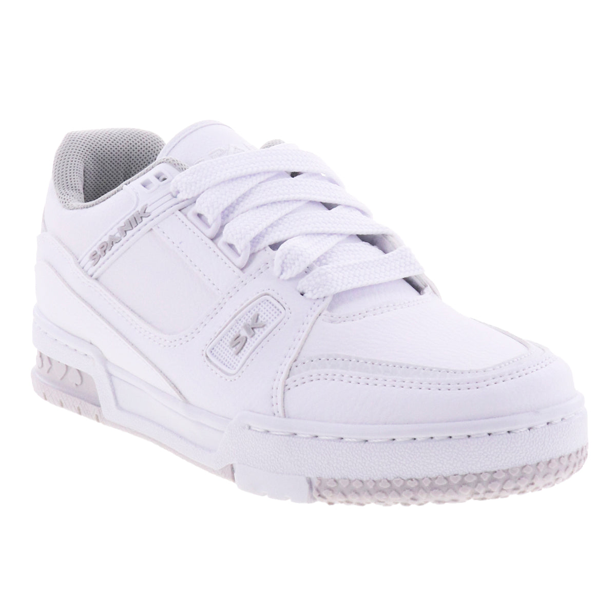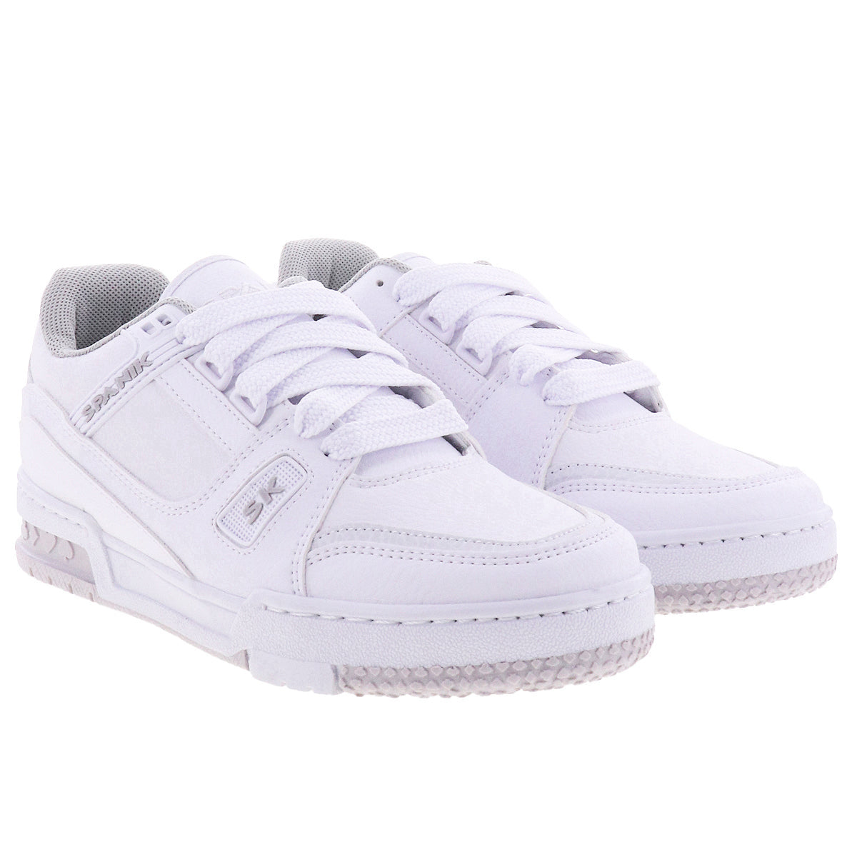 Tenis urbanos de superficie en piel sintética tono blanco, negro y blanco con negro. Cordones de ajuste gruesos y suela antiderrapante.