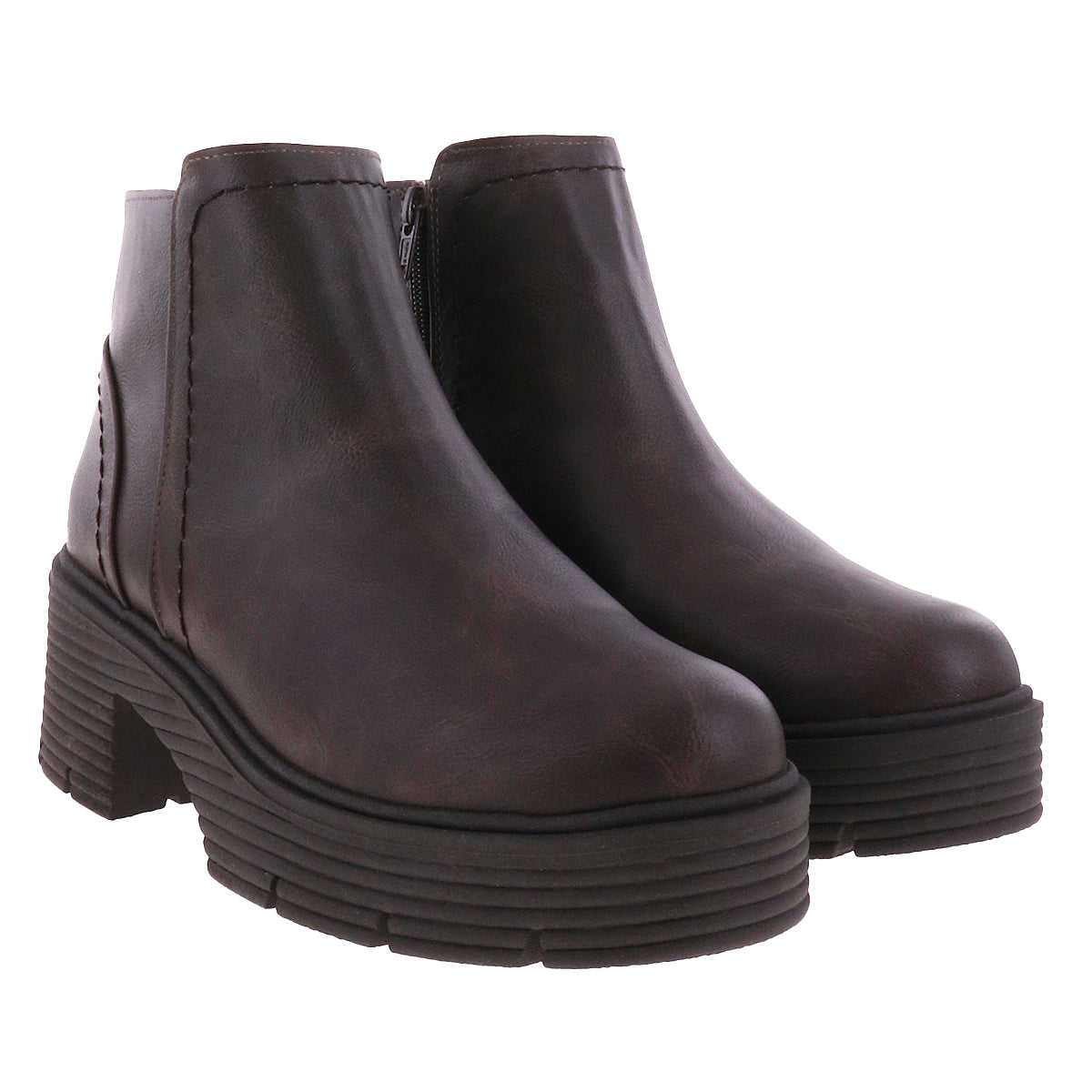 Botas de plataforma chunky, superficie efecto piel sintética en tono café o. negro. Cierre de ajuste en costado interno y suela antiderrapante.