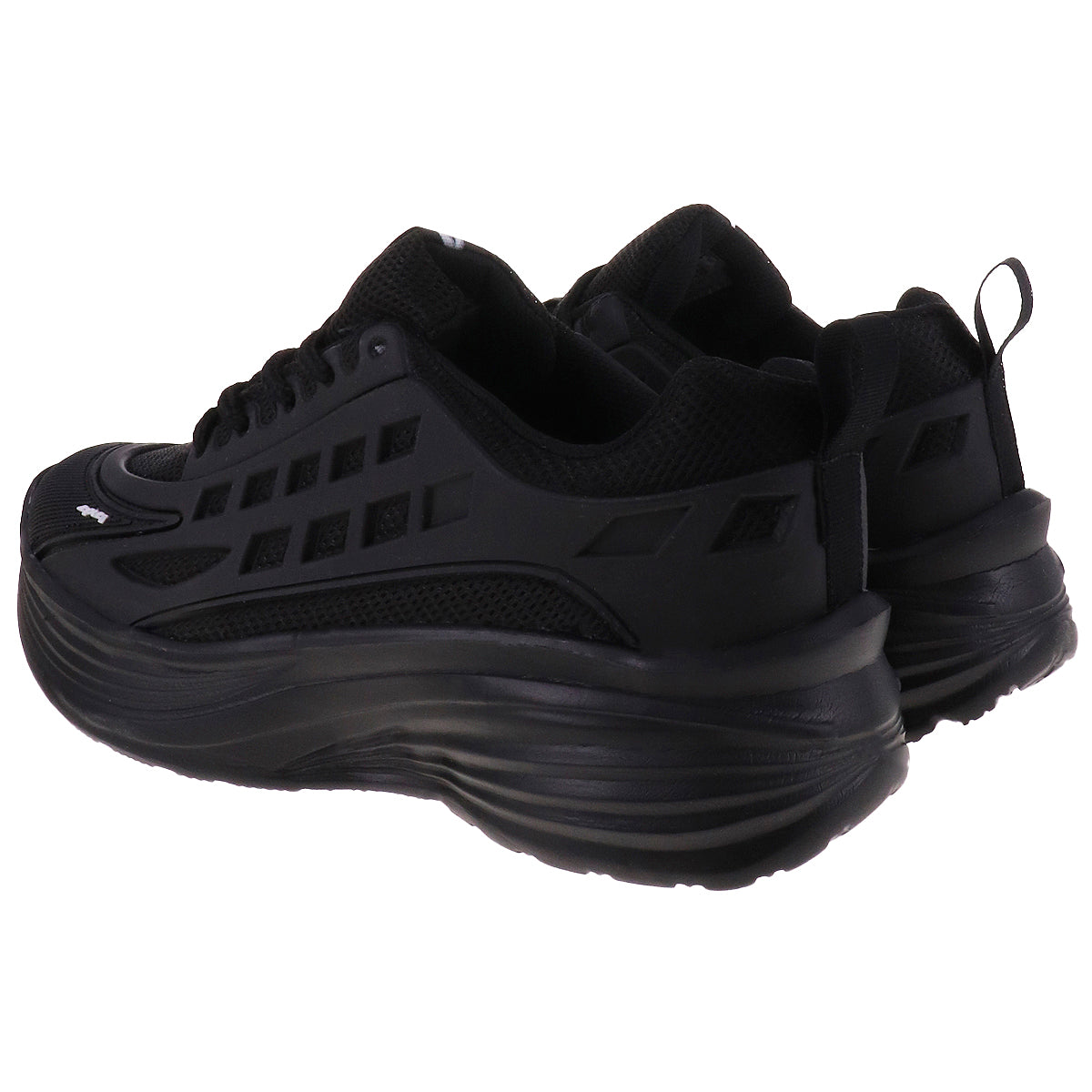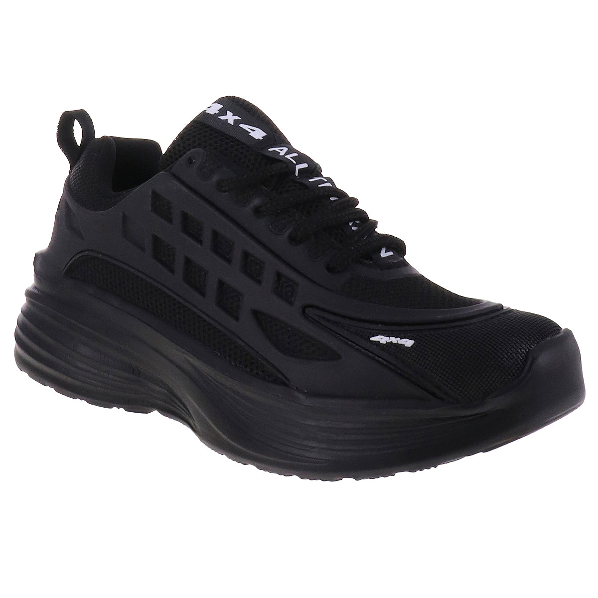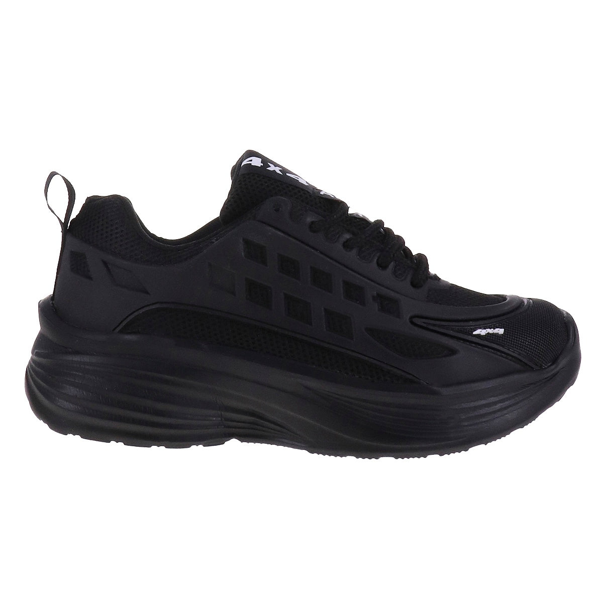 Tenis deportivos de superficie multitextura en tono negro o blanco. Suela de goma antiderrapante y cintas a tono.